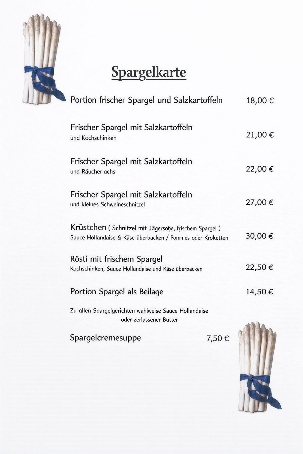Liebe Gäste, hier finden Sie unsere Spargelkarte.